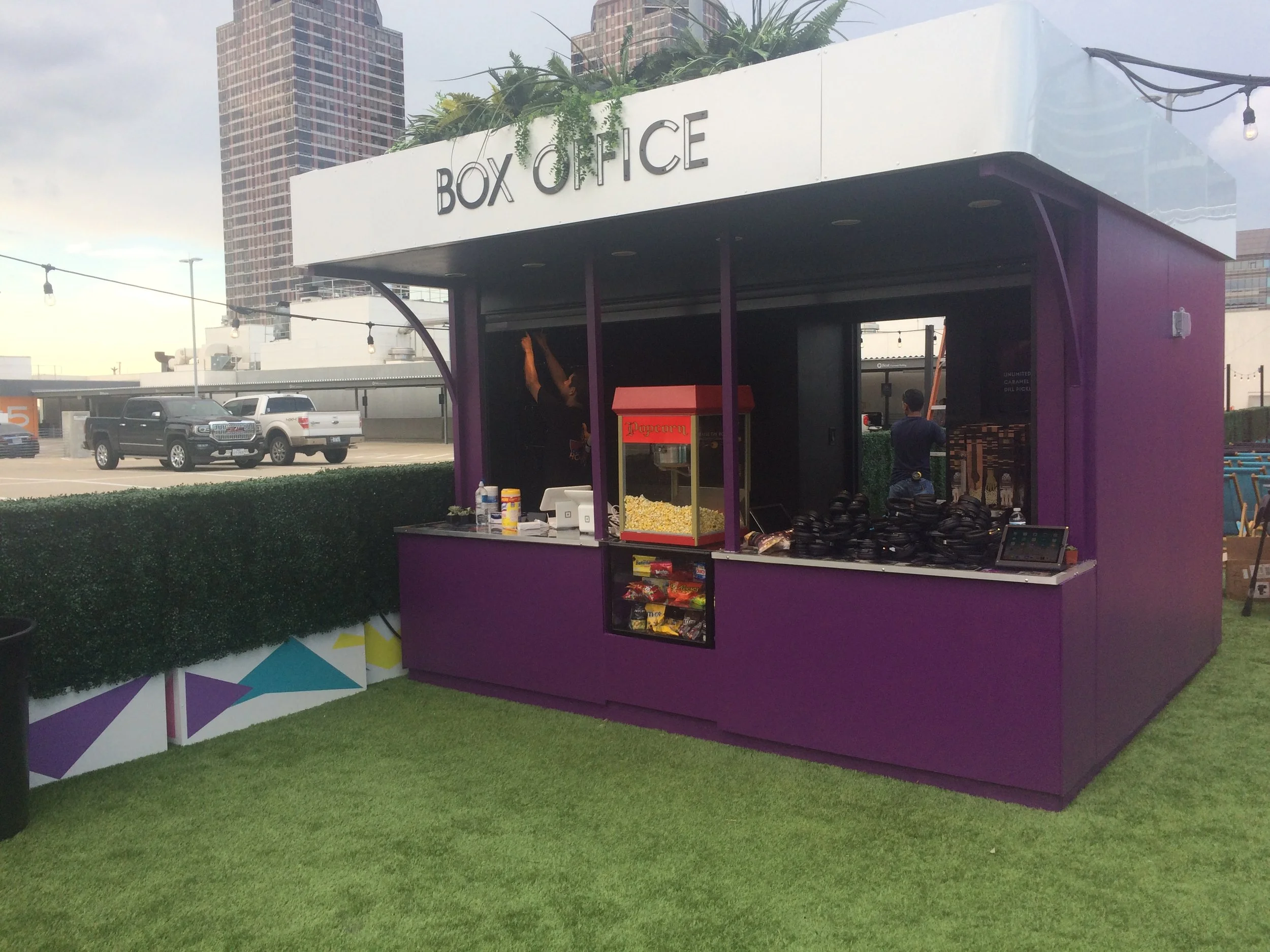 The venue showcases custom design, expert construction, and curated scenic styling to create a uniquely immersive moviegoing experience under the stars.
